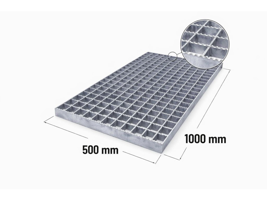 › Rošty skladom › Zinkovaný protišmykový rošt XSP 30/2 - 34 x 38 mm - 500 x 1000 mm