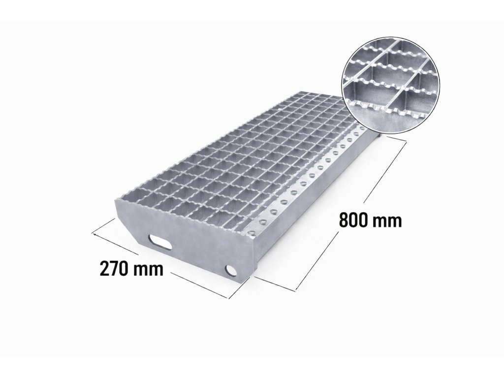 Zinkovaný protišmykový schodiskový stupeň XSP 30/2 - 34 x 38 mm - 800 x 270 mm